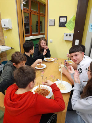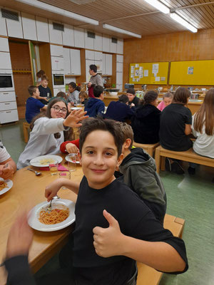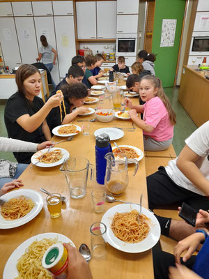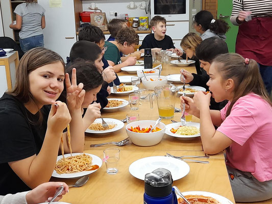 Was für ein Spaß: Eine Nacht im Schulhaus zu schlafen, das hatten sich die Kinder des Offenen Ganztags schon länger gewünscht. Wir wählten eine Nacht von Freitag auf Samstag für diese besondere Aktion und trafen uns am späten Nachmittag in der Aula. Zuallererst kümmerten wir uns um die Versorgung und bereiteten uns in der Schulküche ein leckeres Essen zu. Außerdem backten wir die ersten Weihnachtsplätzchen. Anschließend durften sich die Jungs und Mädchen ihren Schlafplatz in den Gruppenräumen einrichten, bevor wir zu einer Nachtwanderung aufbrachen. Die fiel heuer allerdings sehr kurz aus, weil uns der eisige Wind schnell wieder zurück ins warme Schulhaus trieb. Dort funktionierten wir ein Klassenzimmer zum Kinosaal um und machten es uns dort gemütlich. Wer wollte, durfte sich auch noch in der Turnhalle austoben. Mit einem gemeinsamen Frühstück ließen wir unser Übernachtungsabenteuer ausklingen, und die Kinder machten sich - ein bisschen müde zwar, aber voller schöner Erinnerungen - auf den Heimweg.