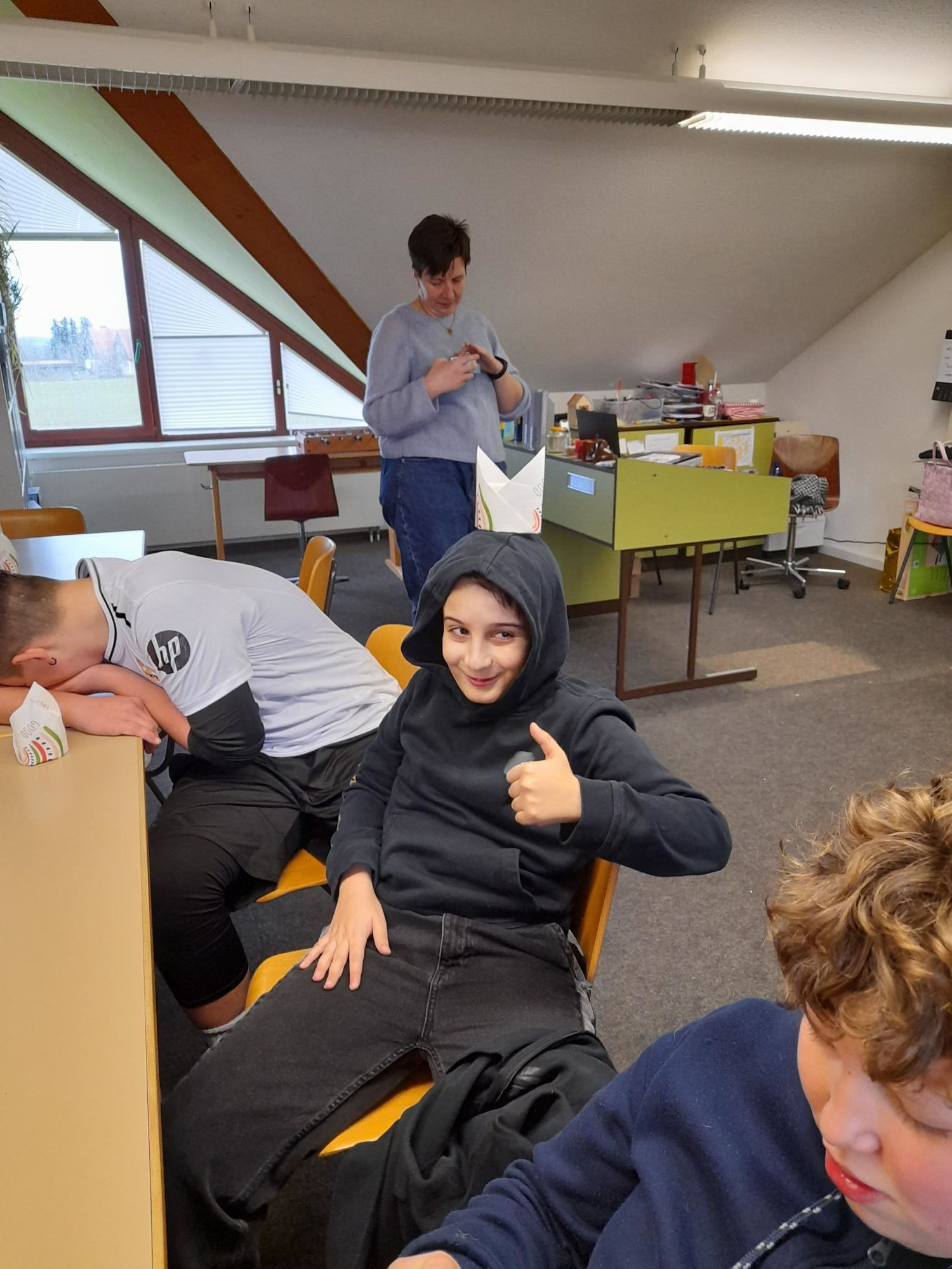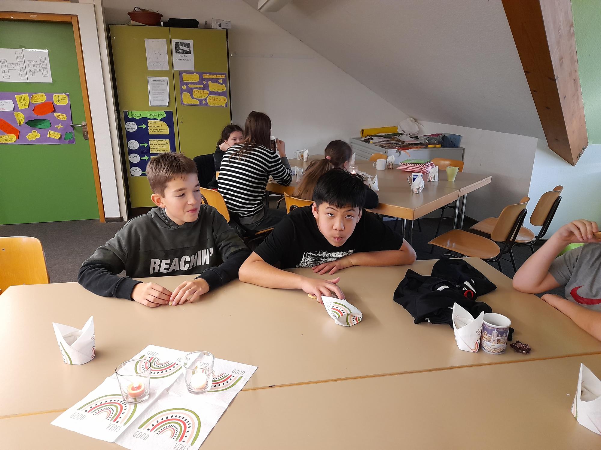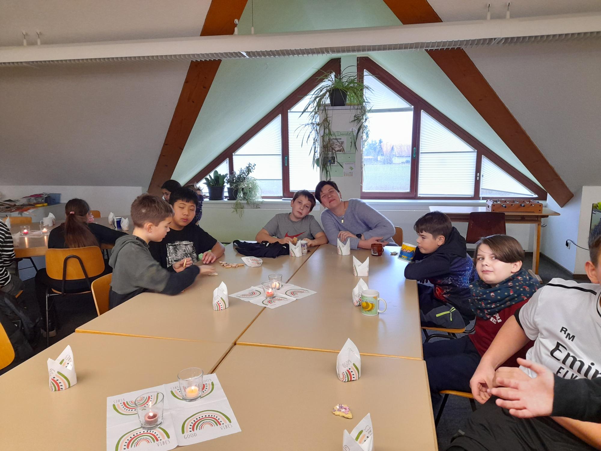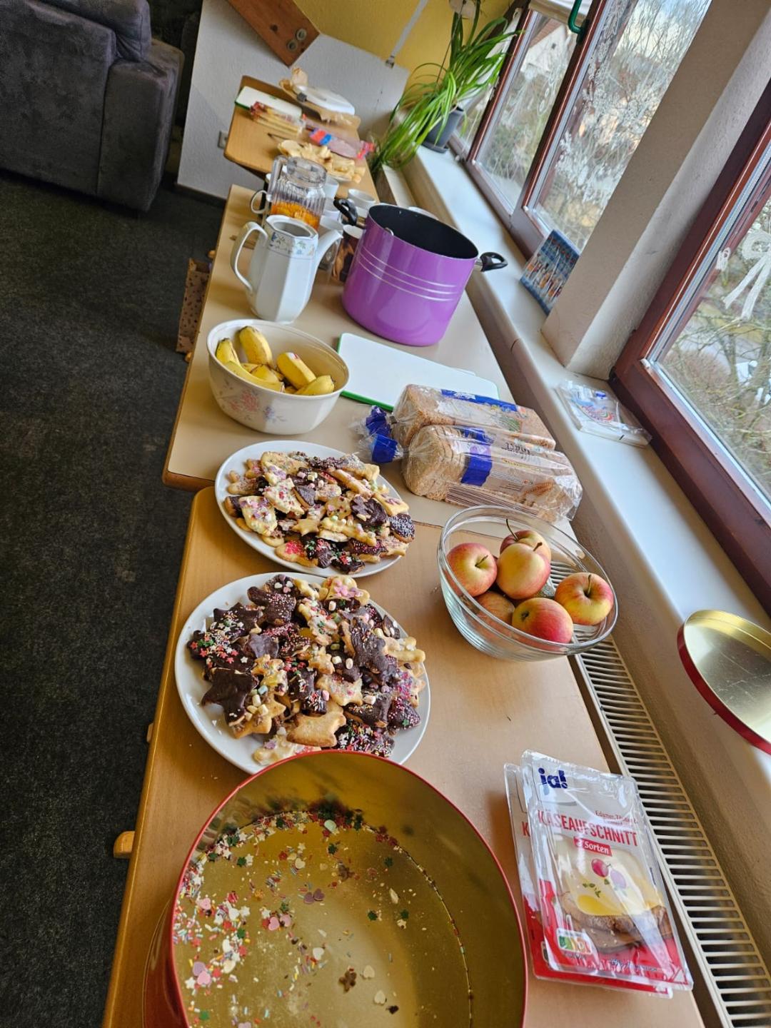 Am letzten Betreuungstag für dieses Jahr machten wir es uns richtig gemütlich: Bei Punsch, Kakao und allerhand süßen und deftigen Leckereien ließen wir es uns gut gehen. Aber gleichzeitig hieß es auch, Abschied von unserer Kati zu nehmen, die in den Ferien wegziehen wird. Wir hatten für sie ein kleines Geschenk vorbereitet und hoffen, dass wir immer wieder mal von ihr hören werden.