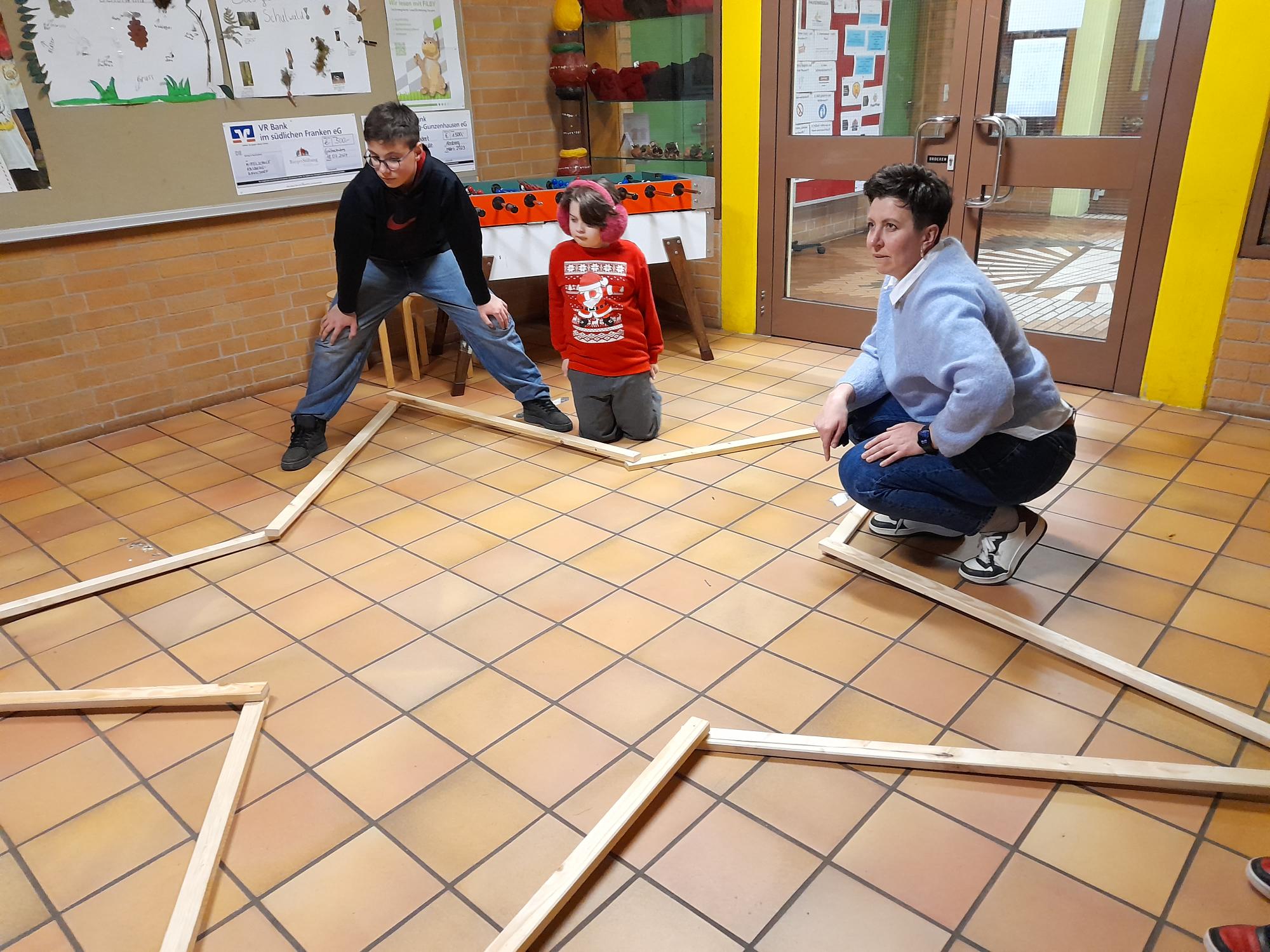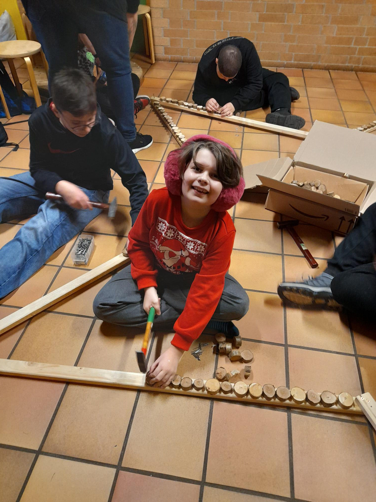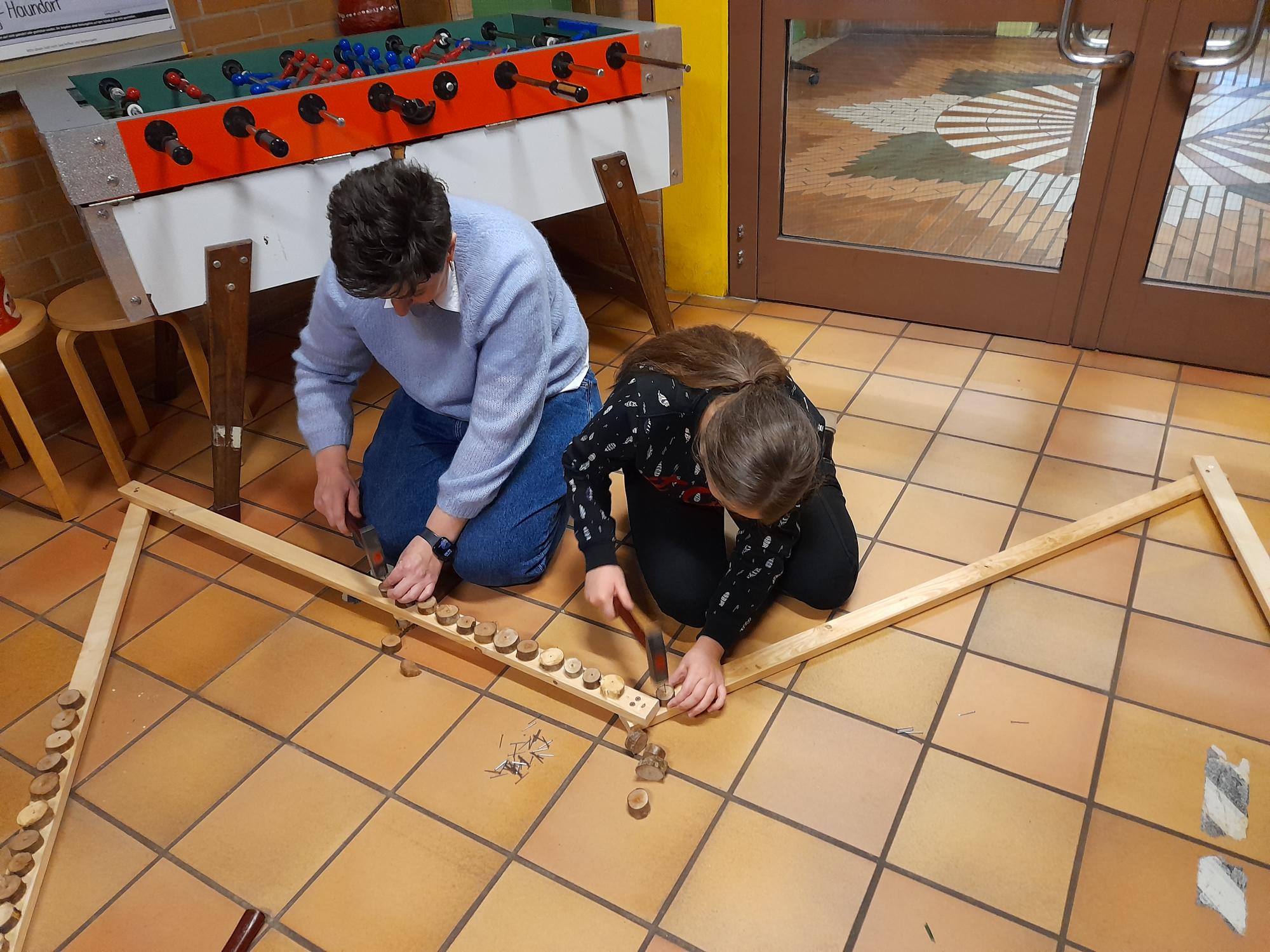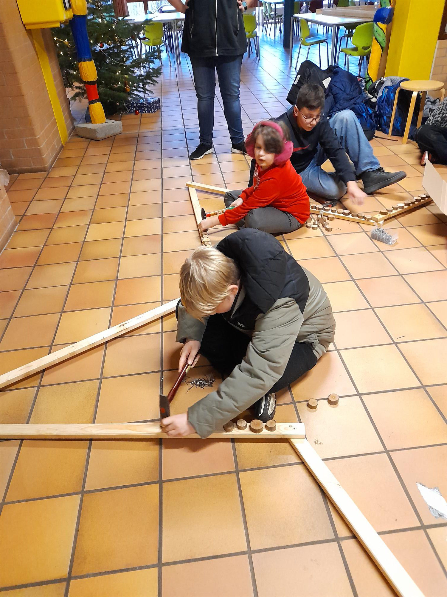 Wir bauen einen großen Stern aus Holz und schmücken das Schulhaus weihnachtlich. Das waren unsere Pläne für den Aktionstag im Dezember. Die Kinder waren mit Feuereifer bei der Sache, schraubten, nagelten und malten, was das Zeug hielt. Und auch wenn nicht gleich alles auf Anhieb wie geplant klappte, das Ergebnis kann sich wirklich sehen lassen. Der heiße Kakao zur Stärkung war auf jeden Fall mehr als verdient.
